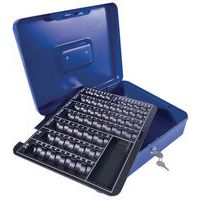 Cassetta per valuta con portamonete, Colore: Blu, Larghezza: 240 mm, Lunghezze: 300 mm, Altezza: 90 mm