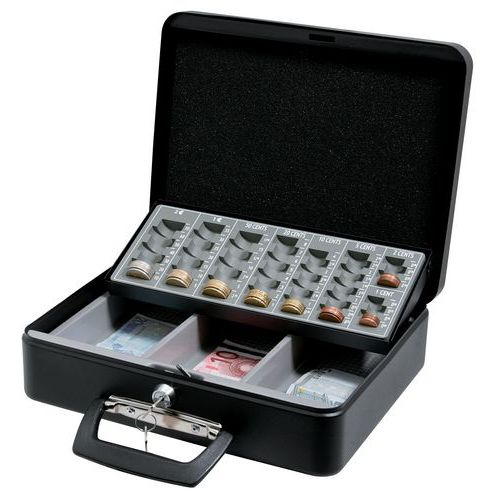 | Descrizione | Cassetta per valuta con portamonete scorrevole, Colore: Nero, Tipo: cassetta per valuta, Larghezza: 230 mm |