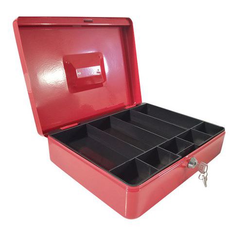 - Cassetta per valuta in metallo con serratura.