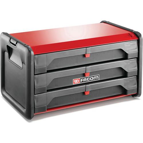 | Descrizione | Cassetta portautensili bimateriale 3 cassetti, Carico max.: 15 kg, Altezza totale: 270 mm |