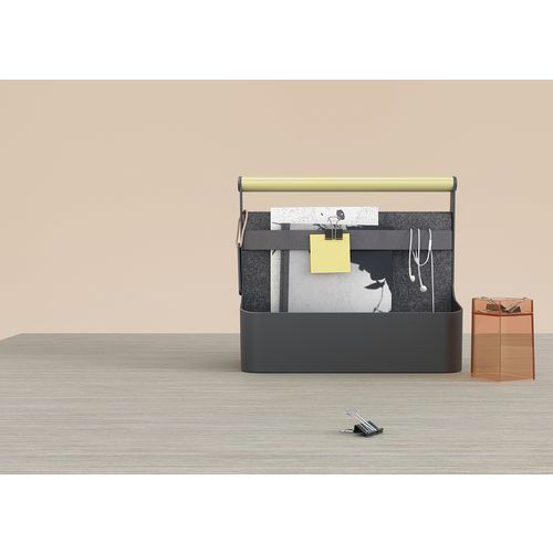 Scatola portaoggetti con diversi scomparti per organizzare e ordinare gli effetti personali e i documenti di lavoro. Ideale per l'ufficio flessibile, questa scatola portaoggetti è maneggevole e facilmente posizionabile nella vostra postazione di lavoro. Con un design essenziale, la scatola portaoggetti dispone di un elastico per inserirvi documenti o ad esempio il tablet. Scatola portaoggetti per professionisti sempre in viaggio