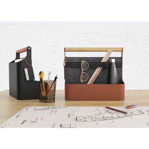 Scatola portaoggetti con diversi scomparti per organizzare e ordinare gli effetti personali e i documenti di lavoro. Ideale per l'ufficio flessibile, questa scatola portaoggetti è maneggevole e facilmente posizionabile nella vostra postazione di lavoro. Con un design essenziale, la scatola portaoggetti dispone di un elastico per inserirvi documenti o ad esempio il tablet. Scatola portaoggetti per professionisti sempre in viaggio