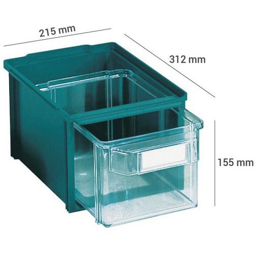 Cassettiera componibile, Capacità: 7 L, Altezza totale: 155 mm, Larghezza totale: 215 mm