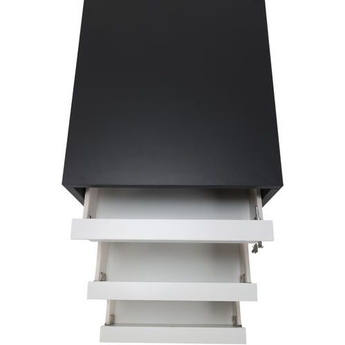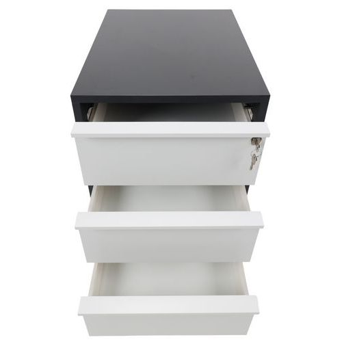 Cassettiera mobile Misao in melaminico con profili di 1 mm. 3 cassetti con pannello in melaminico. Altezza dei cassetti di 8,6 cm e larghezza di 50 cm. Chiusura centralizzata senza antiribaltamento. Maniglia realizzata in profilato d'alluminio anodizzato. Carico massimo per ciascun cassetto da 25 kg. Rotelle girevoli da 37 mm di diametro.
