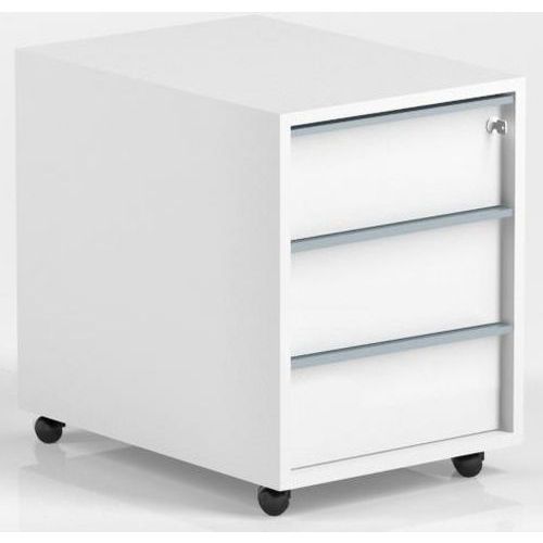 Cassettiera mobile Misao in melaminico con profili di 1 mm. 3 cassetti con pannello in melaminico. Altezza dei cassetti di 8,6 cm e larghezza di 50 cm. Chiusura centralizzata senza antiribaltamento. Maniglia realizzata in profilato d'alluminio anodizzato. Carico massimo per ciascun cassetto da 25 kg. Rotelle girevoli da 37 mm di diametro.