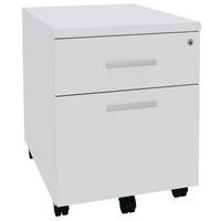 Cassettiera mobile con 2 cassetti per tenere in ordine gli effetti personali o i documenti di lavoro. Ideale per spazi di lavoro. Cassettiera mobile con serratura centralizzata a chiave. Spostamento agevolato grazie alle 4 rotelle. Fornita con 2 chiavi.