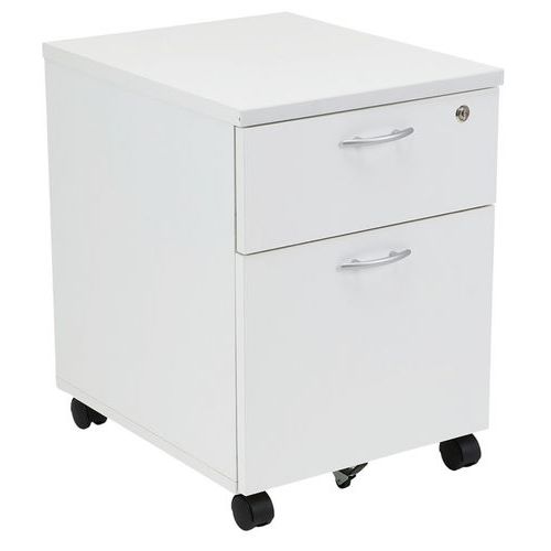 Cassettiera con cassetti in pannelli in truciolare rivestiti in melaminico. Mobile consegnato con rotelle antiribaltamento. Chiusura con serratura a cilindro (1 solo cassetto). Programma efficace e robusto per una facile installazione