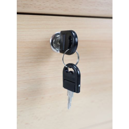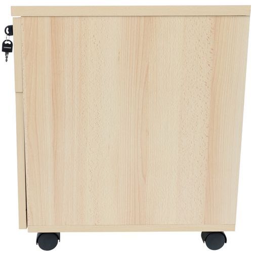 Cassettiera con cassetti in pannelli in truciolare rivestiti in melaminico. Mobile consegnato con rotelle antiribaltamento. Chiusura con serratura a cilindro (1 solo cassetto). Programma efficace e robusto per una facile installazione