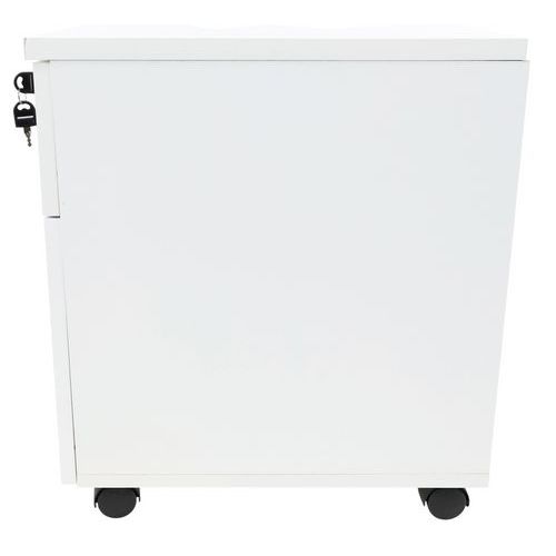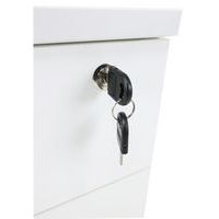 Cassettiera con cassetti in pannelli in truciolare rivestiti in melaminico. Mobile consegnato con rotelle antiribaltamento. Chiusura con serratura a cilindro (1 solo cassetto). Programma efficace e robusto per una facile installazione