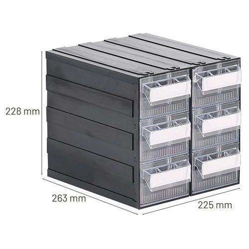 | Descrizione | Cassettiera, Materiale: PVC, Altezza totale: 228 mm, Larghezza totale: 225 mm, Profondità totale: 263 mm |