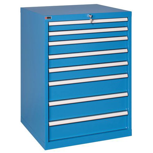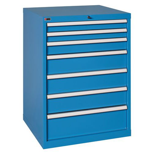 Struttura robusta, predisposta per fissaggio al terreno Apertura di un cassetto per volta con estraibilità totale Cassetto con supporto per etichette Portata cassetti kg 70 Cassetti su guide con cuscinetti a sfera Serratura con chiusura simultanea con 2 chiavi in dotazione Separatori interni disponibili su richiesta contattaci Consigli di sicurezza: - Installare il mobile su una superficie piana - Fissarlo a un muro o a una parete divisoria con dispositivi di fissaggio appropriati - Prestare attenzione a non superare il carico massimo consigliato e a ripartirlo adeguatamente