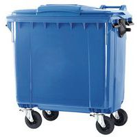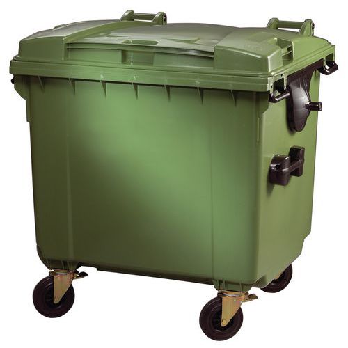 - Cassonetto con 4 ruote in plastica con coperchio piatto.