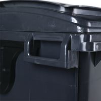 Contenitore per rifiuti Manutan in polietilene ad alta densità (HDPE) stabilizzato ai raggi UV. Facile da manovrare grazie a 4 ruote girevoli (Ø 200 mm), di cui 2 con freno. Maniglie su 3 lati per una maggiore maneggevolezza. Facile da pulire.