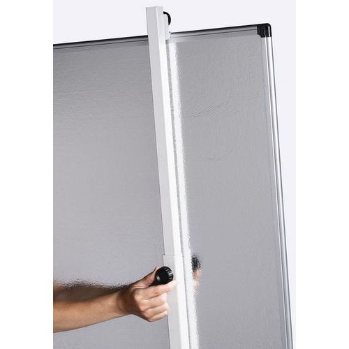 Regolabile in altezza, questo cavalletto permette di posizionare i pannelli a tre altezze differenti.