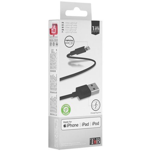 Cavo USB / Lightning, Colore: Nero, Imballaggio riciclabile: Si - 100%, Lunghezza: 1 m