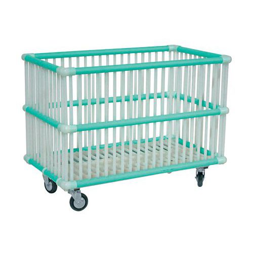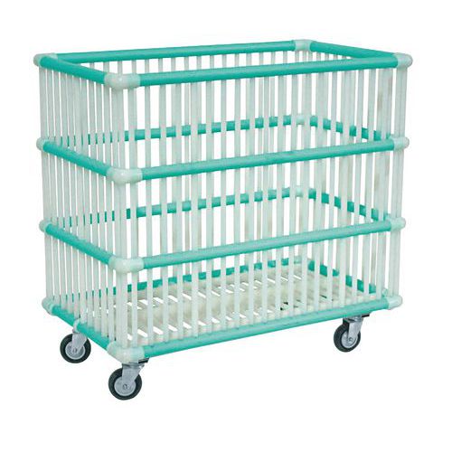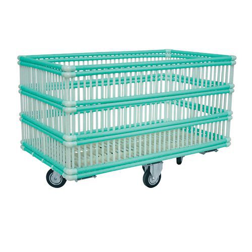 Carrello per uso interno ed esterno su pavimentazioni piane. Struttura in tubolari di polipropilene montati a innesto. Ruote montate su telaio in acciaio zincato. Imballato con pellicola trasparente.