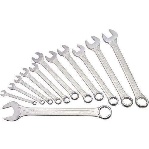 - Set di 1 chiave mista standard metrica (in mm). Forgiato in acciaio al cromo-vanadio. Ideale per tutte le applicazioni più comuni. Chiave composta da 2 teste con la stessa apertura per un serraggio rapido. Testa inclinata a 15° per garantire un uso agevole su superfici piane.