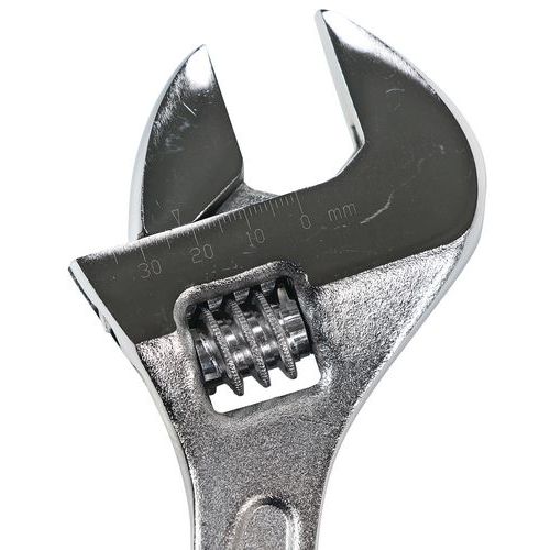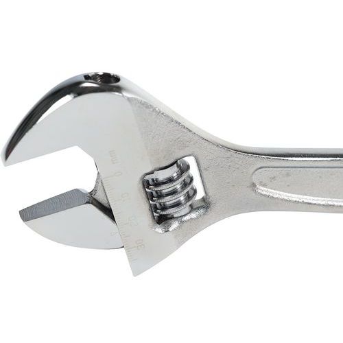 - Chiave inglese in acciaio al cromo-vanadio con testa sottile inclinata a 15°, cremagliera della ganascia non sporgente.