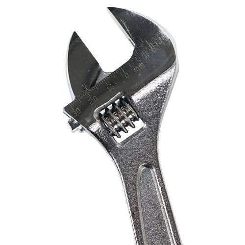 - Chiave inglese in acciaio al cromo-vanadio con testa sottile inclinata a 15°, cremagliera della ganascia non sporgente.