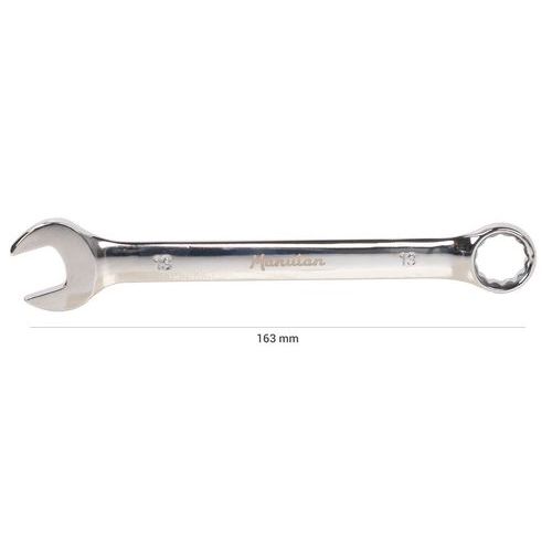Chiave mista standard metrica (in mm). Forgiato in acciaio al cromo-vanadio. Ideale per tutte le applicazioni più comuni. Chiave composta da 2 teste con la stessa apertura per un serraggio rapido. Testa inclinata a 15° per garantire un uso agevole su superfici piane. Forma lineare per un comfort e una presa migliori. Finitura lucida.