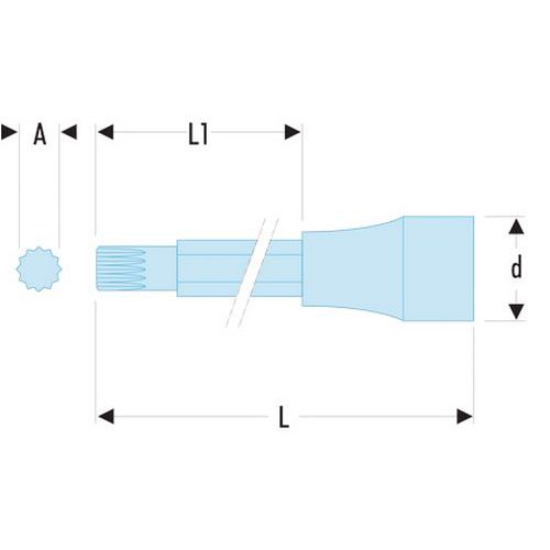 - Serie lunga ed extra lunga. Per viti a brugola XZN®. Punta non rimovibile. Presentazione: cromo lucido, con punta fosfatata.