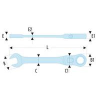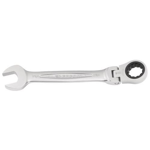Chiavi combinate a cricchetto con testa snodata: consentono di raggiungere dadi difficili da raggiungere. Meccanismo a cricchetto compatto e reversibile ruotando la chiave. Angolo di ritorno di 5° (6° per le misure 5/16 e 3/8). Testa occhiello snodata a 180°. Testa forchetta inclinata di 15°. Dimensioni in pollici da 5/16 a 3/4. Presentazione: cromo satinato.