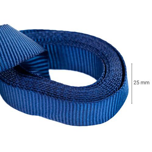 | Descrizione | Cinghia di ancoraggio con fibbia, Lunghezza: 2.5 m, CMU: 225 kg, Larghezza: 25 mm, Colore: Blu |