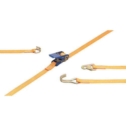| Descrizione | Cinghia di ancoraggio in 2 pezzi con tenditore con gancio - portata 250 kg - con moschettone |