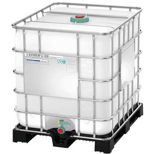 | Descrizione | Cisternetta da 1000 L antistatica, Capacità: 1000 L, Altezza totale: 1160 mm, Larghezza totale: 1000 mm |