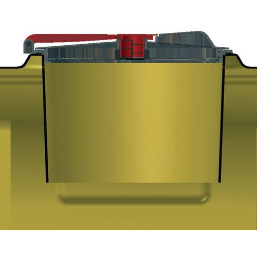 Foro d'uomo ø 380 mm con coperchio montato su cerniera e manichetta antionda.