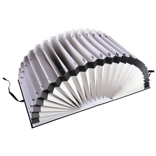 | Descrizione | Classificatore a fisarmonica molto capiente, con 32 scomparti numerati, N. di divisioni: 32, Colore: Nero |