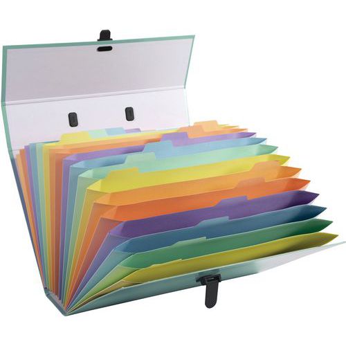 Classificatore a soffietto con manico, N. di divisioni: 18, Colore: Verde chiaro, Materiale: Cartone Classificatore a soffietto con manico, N. di divisioni: 18, Colore: Verde chiaro, Materiale: Cartone