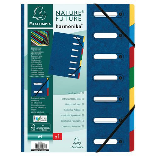 | Descrizione | Classificatore Harmonika® con finestrelle ed elastici, 7 scomparti, N. di divisioni: 7, Colore: Rosso |