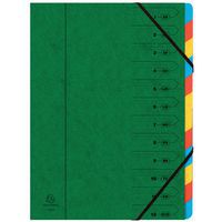 Classificatore pinzato con elastici 12 scomparti, N. di divisioni: 12, Colore: Verde, Materiale: Cartone Classificatore pinzato con elastici 12 scomparti, N. di divisioni: 12, Colore: Verde, Materiale: Cartone