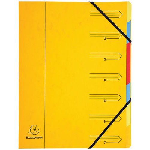 | Descrizione | Classificatore pinzato con elastici 7 scomparti, N. di divisioni: 7, Colore: Giallo, Materiale: Cartone |