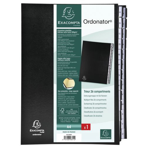 - Classificatore rigido Ordonator con segnalini di plastica alfabetici 26 scomparti da A a Z.