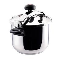 Pentola a pressione Classic Moments in acciaio inox. Casseruola piccola con indicazione interna del livello di riempimento. Doppio sistema di sicurezza, valvola regolatrice della pressione e sistema di bloccaggio con manopola girevole. Adatta a tutti i tipi di fornelli: a induzione, a gas, elettrici e in vetroceramica.