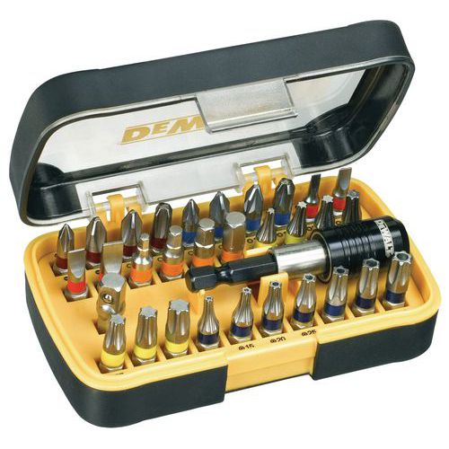 Contenuto della cassetta: PZ 2x2 - PZ3x1 - PH1x1. PH2x2 - PH3x1 - PI3x1. PI4x1 - PI5x1 - PI6,5x1. T10x1 - T15x1 - T20x1 - T25x1 - T27x1 - T30x1 - T40x1. H3x1 - H4x1 - H5x1 - H6x1. T10Hx1 - T15Hx1 - T20Hx1 - T25Hx1 - T27Hx1 - T30Hx1 - T40Hx1.