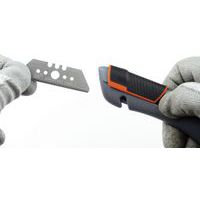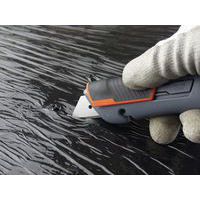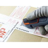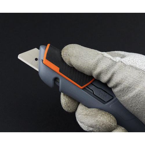 Cutter di sicurezza in bimateriale a lama retrattile. Perfetto per lavori di movimentazione, per l'apertura di cartoni e l'imballaggio. La lama si ritrae automaticamente quando viene rilasciato il cursore. Fornito con lama arrotondata, reversibile per un uso prolungato. Adatto a mancini e destrorsi. Cursore antiscivolo striato in bimateriale per una presa migliore. Dotato di taglierino integrato. Compatibile con avvolgitore ZICOU.
