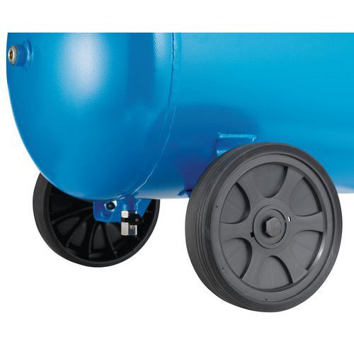 - Spostamento facilitato del compressore grazie a ruote e impugnatura.