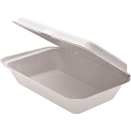 Contenitore per alimenti con coperchio incernierato. Resiste a una temperatura massima di 70 °C. Realizzato in polpa di cellulosa.