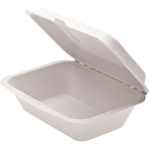 Contenitore per alimenti con coperchio incernierato. Resiste a una temperatura massima di 70 °C. Realizzato in polpa di cellulosa.