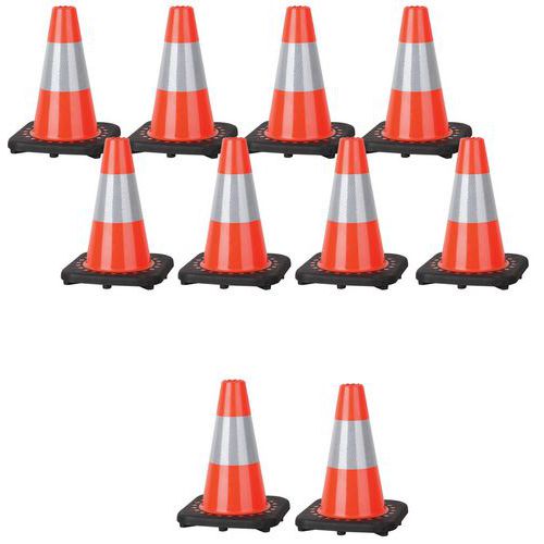 | Descrizione | Cono con 1 striscia catarifrangente, Colore: Arancione, Altezza: 300 mm, Lunghezza: 215 mm, Larghezza: 215 mm |