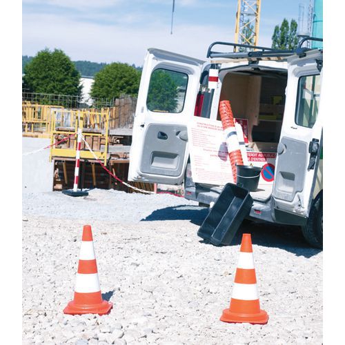 | Descrizione | Cono di segnalazione arancione fluo, Colore: Arancione, Altezza: 500 mm, Materiali: Polietilene |