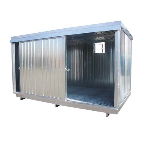 Container adatto allo stoccaggio di lubrificanti. Realizzato con vasca di raccolta, grigliato zincato pedonale con 2 griglie di areazione. Pannelli in lamiera zincata. Prodotto realizzato con materiale idoneo allo stoccaggio di contenitori per olio e oli usati in conformità alle normative vigenti: Dlgs n.22 05/02/1997 – legge Ronchi – D.M. n.392 del 16/05/96, allegato C.