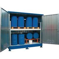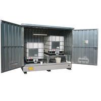 - Container di stoccaggio a 2 piani per esterni per IBC, disponibile in vari modelli a seconda della capacità (3200 L, 2000 L, 2700 L, 4000 L);