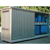 unità- Modul container ideale per lo stoccaggio di sostanze inquinanti e infiammabili che necessitano per quantità di essere conservate in piccoli contenitori o in fusti da 200 lt.