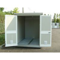 - Container con pannelli in lamiera grecata alu-zincata e porte scorrevoli.
