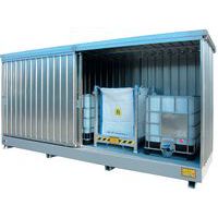 - Container per lo stoccaggio di sostanze a rischio (capacità da 1000 a 2150 L), con sistema di ventilazione con interruttore di protezione IP 55;