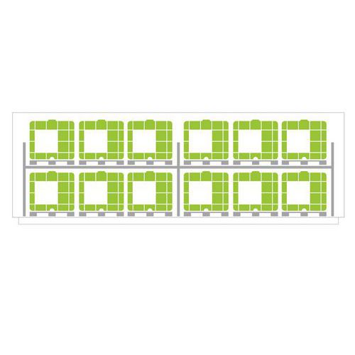 Container con capacità di stoccaggio fino a 12 IBC da 100L.